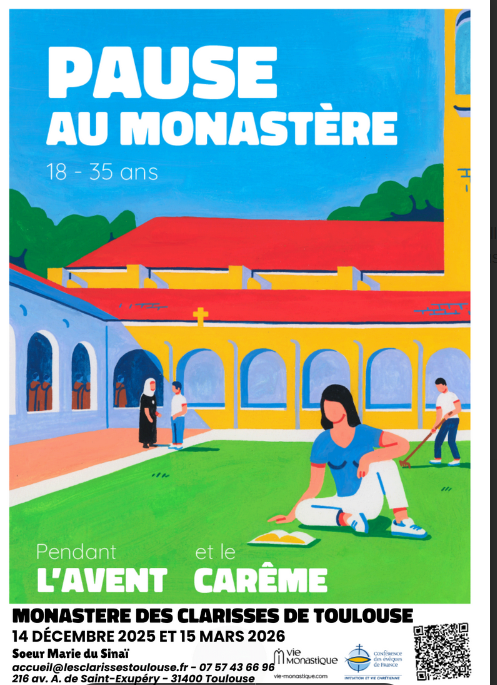Les sœurs Clarisses de Toulouse ont organisé 2 journées « Pause au Monastère » dont la 1ère date était le 14 décembre 2025, le prochain RDV aura lieu le 14 mars 2026 pendant le carême. Voir l’annonce. -